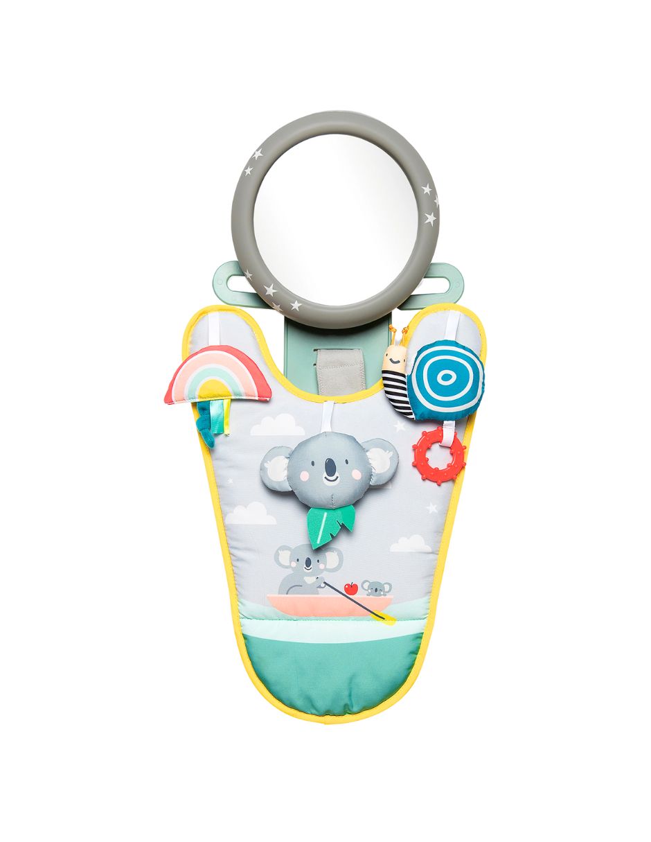 Con una combinación de juguetes blandos y un espejo retrovisor para diversión, desarrollo y seguridad en uno.