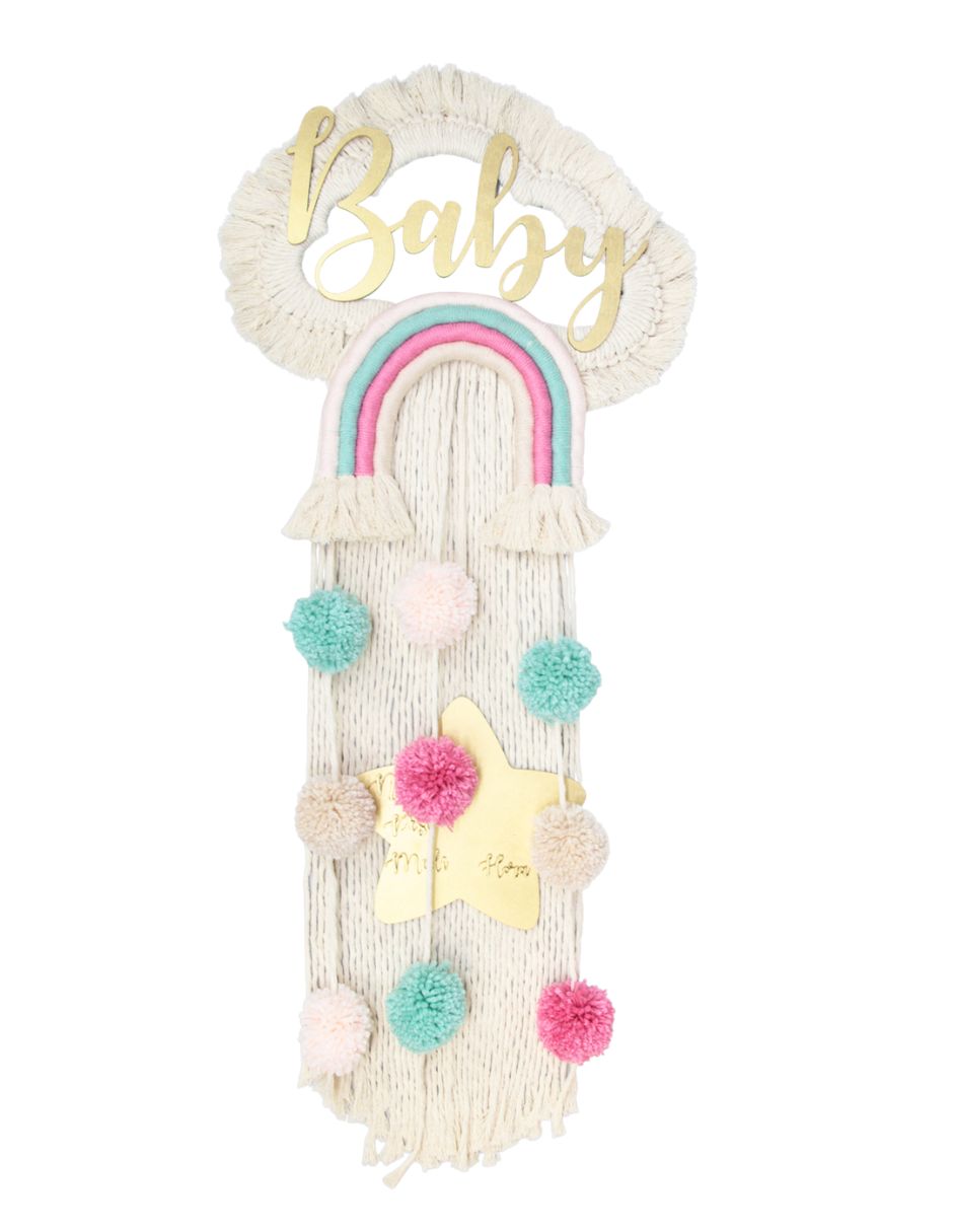Nuestro letrero de bienvenida es el detalle perfecto para recibir a tu pequeño. Son totalmente hechos a mano con un detalle exquisito, por lo que vale la pena la espera para su llegada :)