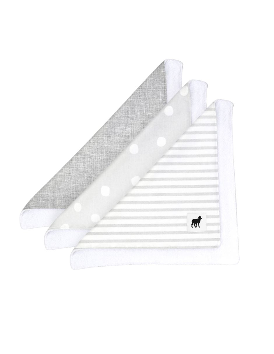 Set de 3 toallitas, muy práctico, para bañar a tu bebé, limpiar su babita o secar su carita delicada.